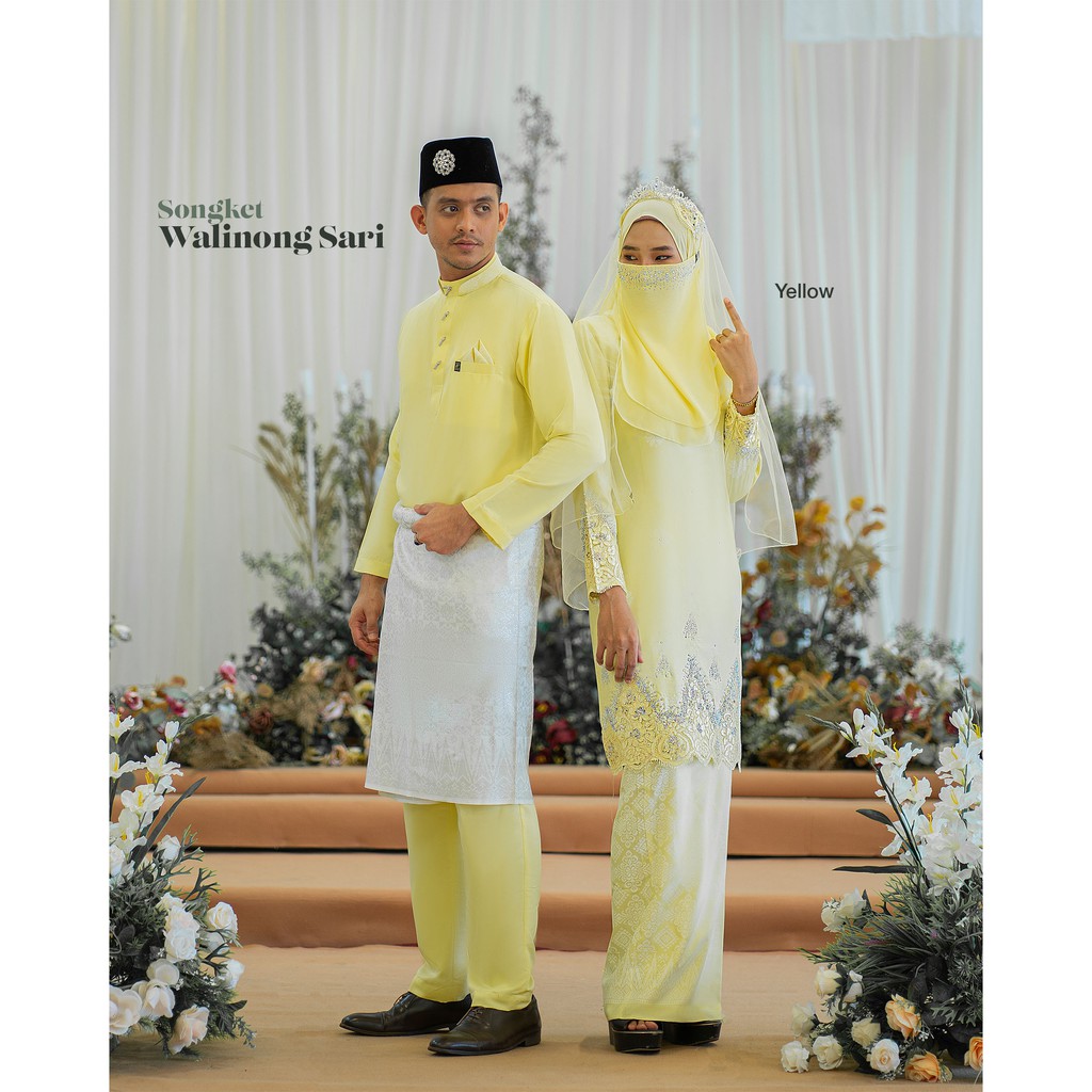 Soft yellow / kuning cair ( set baju pengantin ) baju bertunang baju nikah set couple set sedondon veil pengantin sampin.